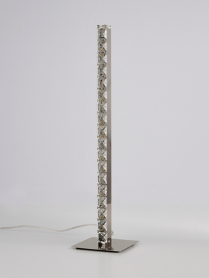 Thick, twisted glass base with polished nickel details and crystal accents.